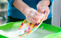 1)“不要使用流動的水沖洗,而是將盤子浸入放有推薦洗滌劑用量的水中清洗”;