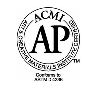 AP(Approved Product)標簽認定藝術材料的安全性通過了毒物學專家的檢測,證明產品成分中不包含足夠量對人體(包括兒童)造成傷害或有毒作用的原料,不會對人體造成急性或慢性的傷害。AP標簽正在取代原有的無毒標簽CP(Certified Product)和HL(Health Label)。AP標簽證明ACMI認可產品符合ASTM D 4236:慢性毒素標簽標準以及Labeling of Hazardous Art Materials Act (LHAMA):危險藝術材料標簽的要求。另外,帶有AP標簽和性能認證證書或CP標簽的產品被認證為滿足ACMI和其他標準機構(如ANSI,ASTM等)制定的材料,工藝,使用質量,和顏色的特殊標準。有些產品無法得到性能證書,因為目前沒有適用于這些產品標準。